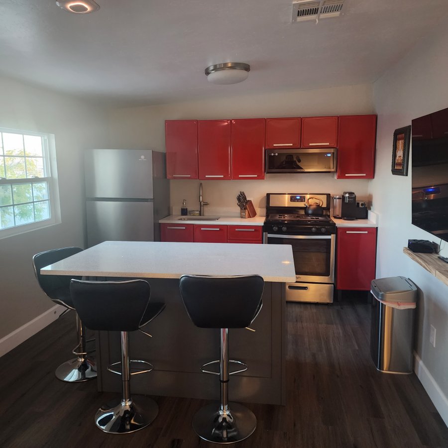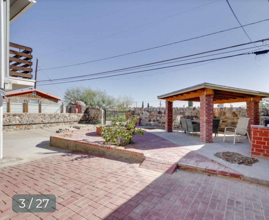 Reply to this AdOn Grant Avenue, close to bars and restaurants (walkable), 7 mins to airport, 5 mins to downtown, close to Utep. Fully furnished, modern. 1 bedroom with King bed, parking, laundry room (Laundry facilities are located downstairs and available for your use), outdoor dining area, patio, Alexa enabled smoke/carbon monoxide detectors that play music, keyless entry, secured yards, central heating and cooling, electric fireplace, smart TVs & WIFI. Wi-Fi codes are in a frame located in either the kitchen or living room shelves There is central heating and cooling with the nest thermostat. Gates on front and rear of property to lock with codes for keypads. Parking is in the yard with sufficient parking for one car per guest. In the kitchen cabinets there are packages of oatmeal, snacks, coffee, tea, and sugar/sweeteners and bottles of water in the fridge. The kitchen is equipped with several appliances for your cooking needs, open the deep drawers to discover basic cooking essentials. If you didn’t pack a hair dryer, we got you covered. In the restroom under the vanity or in the vanity drawers you will discover hair dryer, iron, and steamers. STRICT NO SMOKING OF ANY KIND ON THE PROPERTY. Private patio overlooking view of city and Juarez, lights at night are gorgeous.