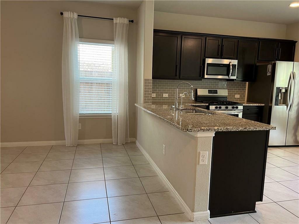 This lovely townhouse located in Teravista Villas has all of the best amenities that Teravista has to offer. Amenities include 3 swimming pools with kiddie splash pad, two fitness centers, golf course access, hiking trails, clubhouse, and so much more. The townhouse features: stainless steel grade appliances, center island kitchen with granite counter tops, gas stove top, tile flooring through out except for the bedrooms, primary bedroom on the first floor. The open concept living provides an abundance of natural lighting and a privacy fenced back yard -with no neighbors behind you -to unwind from a long work day. Easy access to the toll way &; major highways, shopping (outlet mall), IKEA, entertainment, restaurants and the beautiful town square of Georgetown. Schedule your tour today!